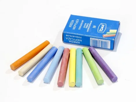 Kreda szkolna w różnych kolorach.Fajnie brudzi ręce i pięknie się supie podczas pisania po tablicy.W smaku ponoć nie za dobra. :|